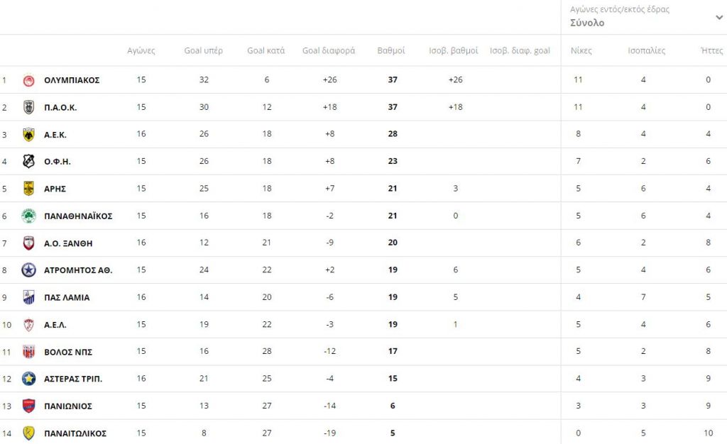 Δείτε τα αποτελέσματα και το πρόγραμμα της 16ης αγωνιστικής: