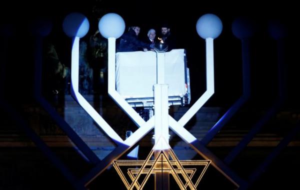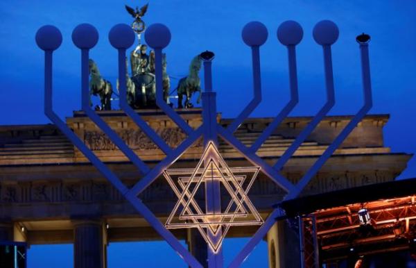 Η μεγαλύτερη λυχνία Μενορά της Ευρώπης φωτίστηκε την Κυριακή στην Πύλη του Βρανδεμβούργου στο Βερολίνο κατά τη διάρκεια της εβραϊκής γιορτής Χανουκά.