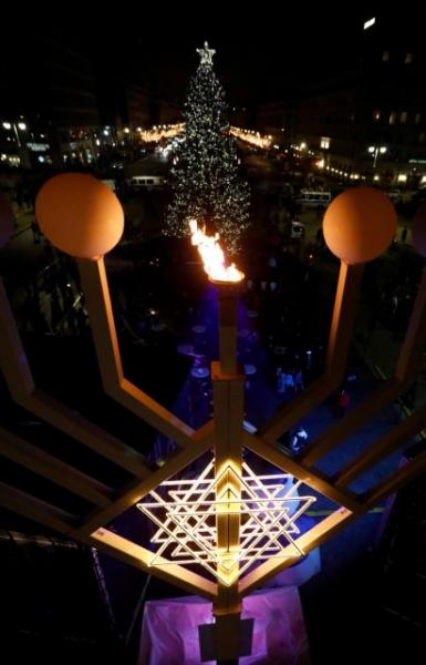 Η Μενορά του Χανουκά έχει εννέα λύχνους ή κεριά (οκτώ κλάδοι συν ο κεντρικός) και έχει ύψος 10 μέτρων.