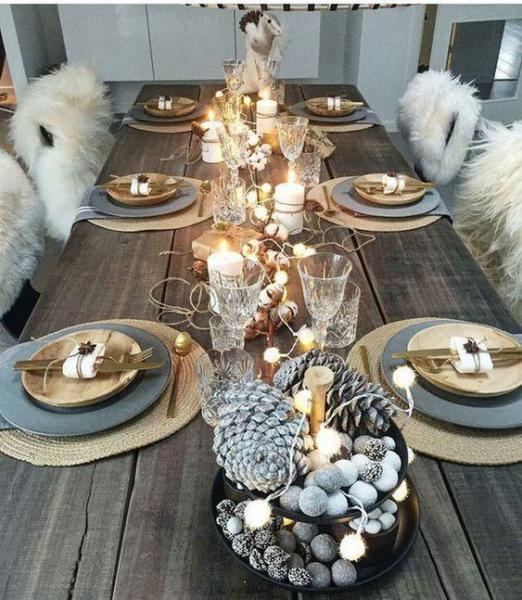 Ετοιμάστε μια εντυπωσιακή σύνθεση από φυσικά υλικά για πιο ζεστό αποτέλεσμα. Χρησιμοποιήστε σαν βάση κλαριά δέντρου ή ξύλινα πλατό και διακοσμήστε τα με κεριά, κουκουνάρια ακόμα και χειμωνιάτικα φρούτα.