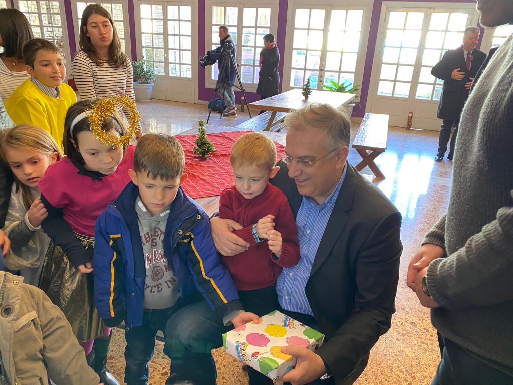 Ο υπουργός Εσωτερικών, Τάκης Θεοδωρικάκος, μοίρασε δώρα στα παιδιά που φιλοξενούνται στην «Κιβωτό του Κόσμου» στην Πωγωνιανή, στα ελληνοαλβανικά σύνορα.