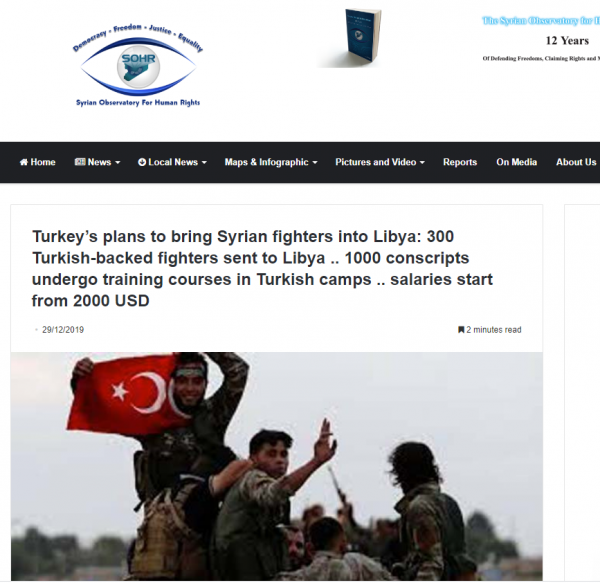 Σύμφωνα με το Συριακό Παρατηρητήριο Ανθρωπίνων Δικαιωμάτων, στη Λιβύη βρίσκονται ήδη οι 300 πρώτοι πιστοί στον Ερντογάν σύροι μαχητές/μισθοφόροι για να αγωνιστούν στο πλευρό της κυβέρνησης της Τρίπολης, είδηση πάντως την οποία διαψεύδει ο Σαράτζ.