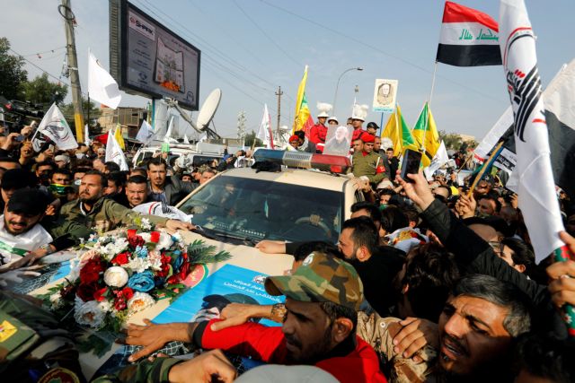 Χιλιάδες Ιρακινοί φώναζαν σήμερα «Θάνατος στην Αμερική», σε πομπή πίσω από τα φέρετρα του Ιρανού στρατηγού Κασέμ Σουλεϊμανί και του Αμπου Μάχντι αλ Μουχάντις, του κύριου υπολοχαγού του στο Ιράκ, που σκοτώθηκαν τη νύχτα της Πέμπτης προς Παρασκευή σε αμερικανική επιδρομή.