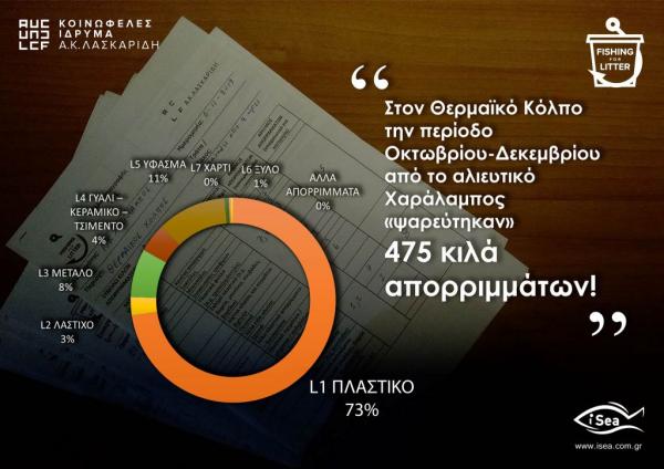 Σύμφωνα με την υπεύθυνη του προγράμματος από την iSea, Ρωξάνη Νασάν Αγά – Σπυριδοπούλου, δύο αλιευτικά σκάφη, έβγαλαν με τα δίχτυα τους, μαζί με την ψαριά, 888 κιλά απορριμμάτων.