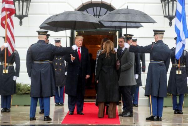 Συνοδευόμενος από την σύζυγό του, Μαρέβα, ο πρωθυπουργός της Ελλάδας, Κυριάκος Μητσοτάκης, έφτασε στον Λευκό Οίκο, προκειμένου να συναντήσει τον αμερικανό πρόεδρο, Ντόναλντ Τράμπ
