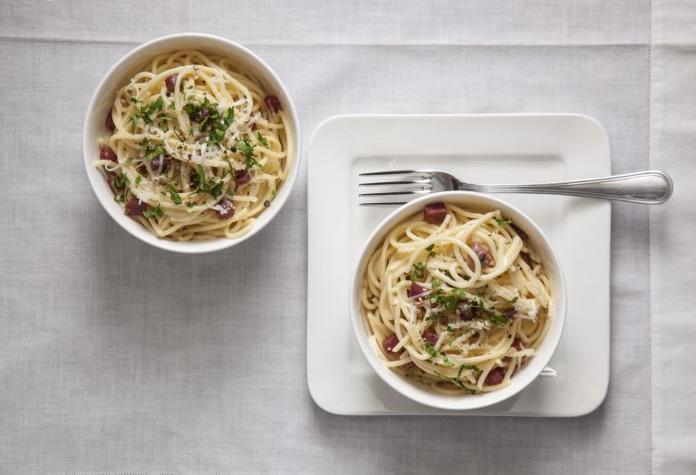 Καρμπονάρα με σαλάμι αέρος Κέρκυρας