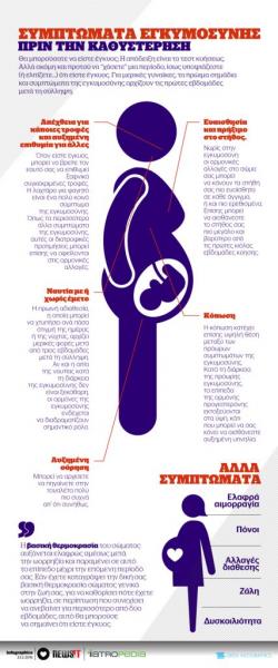 Δείτε τι ακριβώς να περιμένετε ότι θα βιώσετε, ως συμπτώματα εγκυμοσύνης, ακόμα και πριν την καθυστέρηση περιόδου. Από τη ναυτία και την ευαισθησία στο στήθος, μέχρι τις ζαλάδες και τις εναλλαγές της διάθεσης...