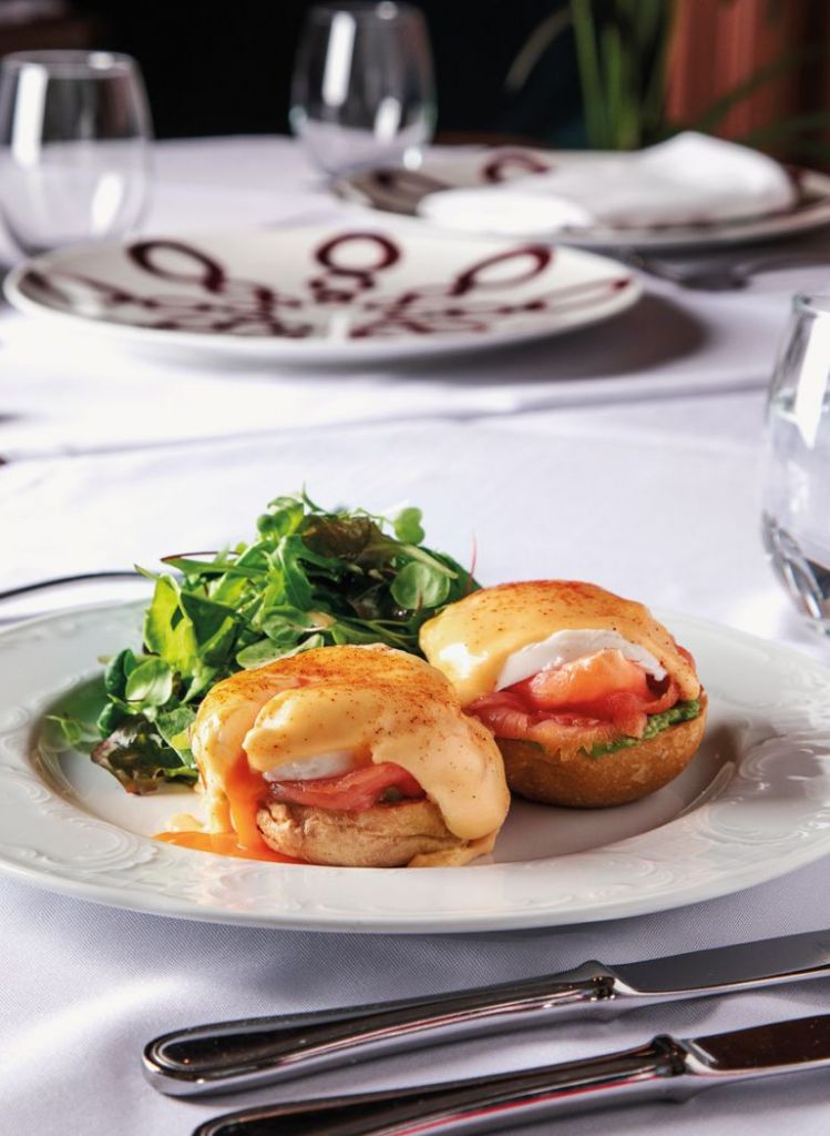 Αυτό λοιπόν που μας περιμένει εκεί είναι ένα πλούσιο brunch επτά πιάτων(!) επιμελημένο με φροντίδα από τον executive chef Νίκο Σκλήρα, από τα χέρια του οποίου έχουν φάει (και εξακολουθούν να τρώνε) μερικές από τις πιο διάσημες προσωπικότητες του πλανήτη, όπως η Μέριλ Στριπ, ο Μπρους Γουίλις, ο πρίγκιπας του Μονακό και ο, τακτικός πλέον πελάτης, Valentino. Μάθαμε κιόλας ότι η αδυναμία του τελευταίου είναι το κέικ τύπου φοντάν (το οποίο στο κέντρο του είναι ρευστό) σοκολάτα-πορτοκάλι με σορμπέ σοκολάτας μπίτερ.