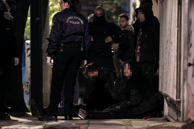 Οι αστυνομικοί άνοιξαν με τροχό την πόρτα του οικήματος στο οποίο είχε γίνει ανακατάληψη και εισέβαλαν στο εσωτερικό του, όπου συνέλαβαν πέντε άτομα, (τρεις άνδρες και δύο γυναίκες, ανάμεσά τους και ένας ανήλικος). Οι συλληφθέντες οδηγήθηκαν στην Κρατική Ασφάλεια,