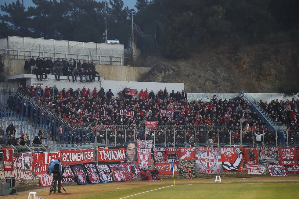 Έντονη ερυθρόλευκη παρουσία στο γήπεδο της Λαμίας, με τον κόσμο του Ολυμπιακού να δίνει έντονο παλμό από την κερκίδα, όπου βρέθηκαν από πολύ νωρίς.