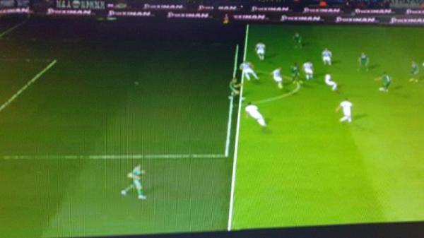 Είτε η μία γραμμή είναι λάθος είτε η άλλη. Παράλληλα όμως, σ’ αυτή που δεν τη λες και… ίσια, παρατηρεί κανείς ότι η γραμμή έχει μπει στον ώμο του παίκτη του ΠΑΟΚ, ενώ δεν υπάρχει δυνατότητα 3d ανάλυσης για να μπορεί να μετριέται σωστά η κατακόρυφος, ενώ η παγκόσμια πρωτοτυπία φαίνεται και από το γεγονός ότι η γραμμή περνάει πάνω από το πόδι του ποδοσφαιριστή του Παναθηναϊκού!!!!