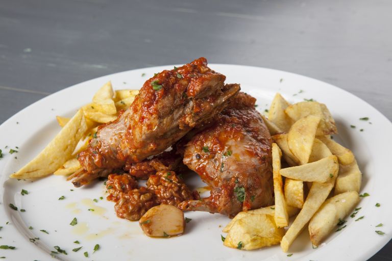 Κουνέλι με καρυδάτη κόκκινη σάλτσα