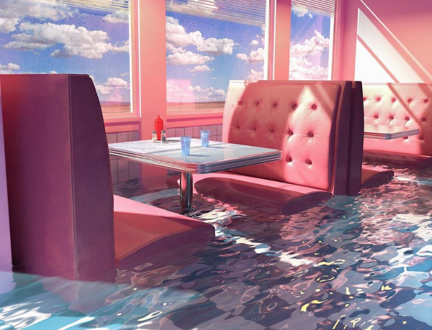 Σε κάθε ηλιόφωτη εικόνα, ο αμερικανός καλλιτέχνης ρίχνει μια ματιά στο ζοφερό μέλλον που μας επιφυλάσσει η άνοδος της στάθμης της θάλασσας και η αλλαγή του κλίματος.