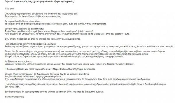 Σημειώνεται ότι τα εκβιαστικά αυτά μηνύματα ηλεκτρονικού ταχυδρομείου έχουν κυρίως τις παρακάτω μορφές και περιεχόμενο, ενώ η αναφορά σε πραγματικούς κωδικούς γίνεται ώστε οι χρήστες να πεισθούν για το αληθινό της απειλής.