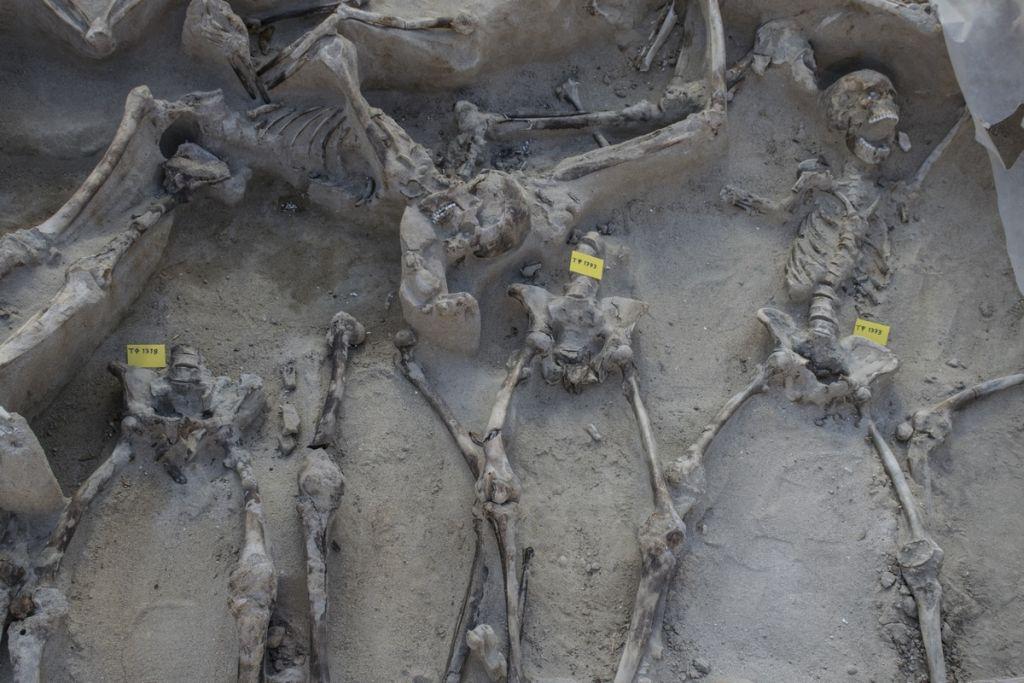 Πρόκειται για ομαδική ταφή 79 ανθρώπινων σκελετών χωρισμένων σε τρία ορύγματα και αλυσοδεμένων μεταξύ τους στους καρπούς.