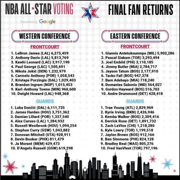 Αξίζει να σημειωθεί πως οι 8 starters μπορούν να επιλεγούν είτε από τον Γιάννη, είτε από τον ΛεΜπρόν ανεξάρτητα από το αν ανήκουν σε Δύση ή Ανατολή. Η επιλογή από τους δύο, θα γίνει στις 6 Φεβρουαρίου σε ζωντανή μετάδοση, όταν και θα γίνουν αναλυτικά γνωστές οι δύο ομάδες του All Star Game 2020.