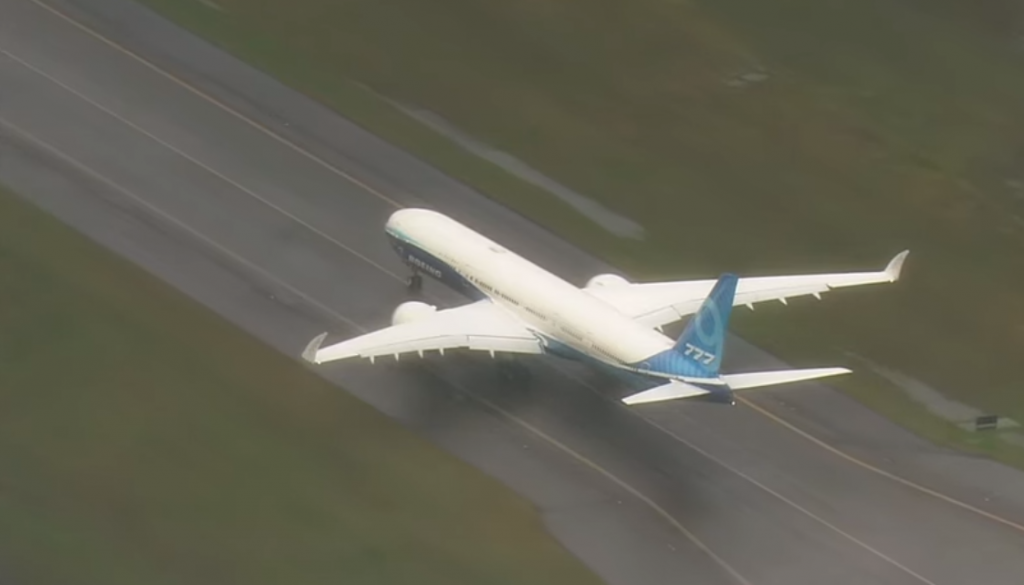 Το νέο αεροσκάφος μεγάλων αποστάσεων της αεροπορικής εταιρείας Boeing, το 777Χ, απογειώθηκε σήμερα από το αεροδρόμιο Πέιν του Σιάτλ, στις βορειοδυτικές ΗΠΑ, για το παρθενικό του ταξίδι