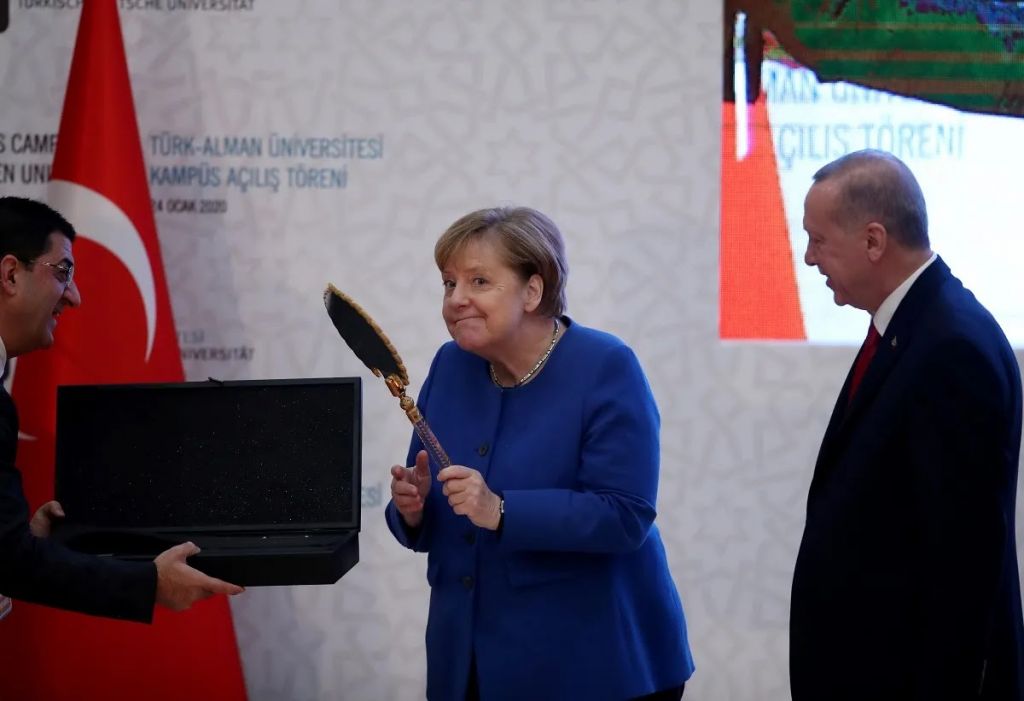 Ο μπρούντζινος καθρέφτης που ενθουσίασε τη Μέρκελ στην Κωνσταντινούπολη μπορεί να ήταν το μικρό δώρο του Ερντογάν για τον ελληνικό αποκλεισμό από τη διάσκεψη του Βερολίνου για το λιβυκό ζήτημα