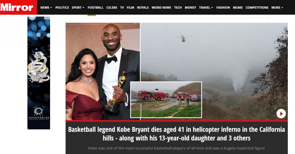 Κόμπι Μπράιαντ: Πρώτο θέμα στα ξένα μέσα η είδηση του θανάτου του