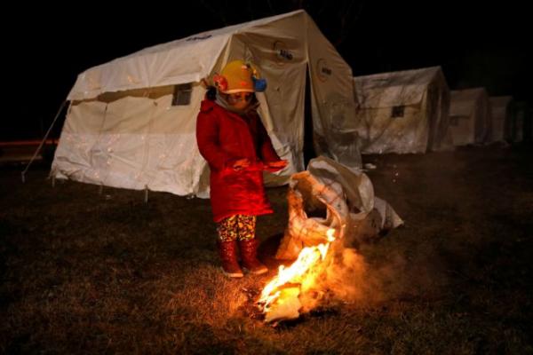 «Τα παιδιά μας φοβούνται, βρίσκονται σε πολύ άσχημη ψυχολογική κατάσταση» εξήγησε η Έσρα Κασάπογλου, που πέρασε τη νύχτα του Σαββάτου προς Κυριακή καθισμένη γύρω από μια φωτιά, στον δρόμο.