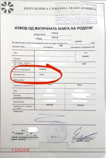 Στα πιστοποιητικά γέννησης που χορηγούνται στη Βόρεια Μακεδονία εξακολουθεί να μην καταγράφεται η υπηκοότητα των πολιτών, όπως αυτή συμφωνήθηκε με την Ελλάδα στη Συμφωνία των Πρεσπών.