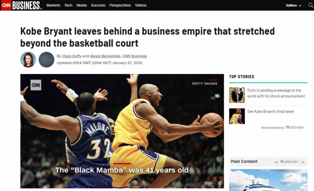Αυτό που είναι αναμφισβήτητο είναι ότι πέρα από μεγάλος αθλητής ο Κόμπι Μπράιαντ ήταν και ένα πολύ μεγάλο επιχειρηματικό μυαλό.