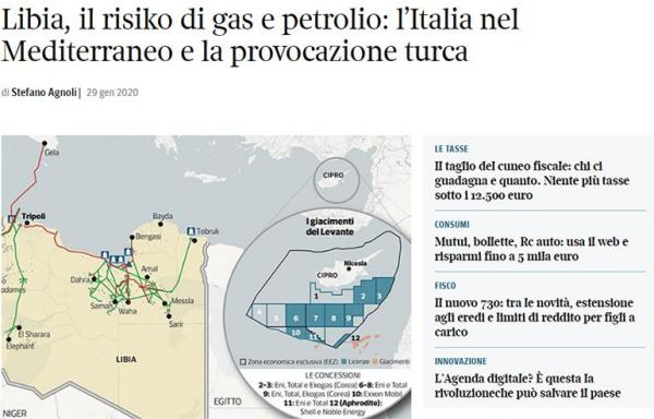 Την ίδια ώρα, η ιταλική εφημερίδα Corriere della Sera δημοσίευσε άρθρο με τίτλο «Λιβύη, το παιχνίδι στρατηγικής φυσικού αερίου και πετρελαίου».