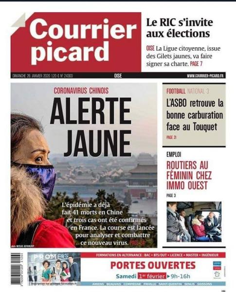 Σε ρατσιστικό παραλήρημα προχώρησε και μία γαλλική εφημερίδα, η οποία δεν δίστασε να βγάλει πρώτο θέμα με απαράδεκτο τίτλο “Κίτρινος κίνδυνος” και εικόνα μία γυναίκα από την Κίνα να φορά την μπλε μάσκα.