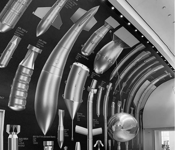 Οι βόμβες παρατίθενται σε χρονολογική σειρά, από μια χειροβομβίδα του 1911 μέχρι έναν κατευθυνόμενο πύραυλο με πυρηνική κεφαλή του 2019