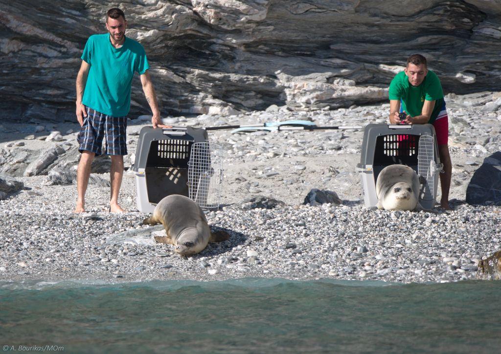 Απελευθερώθηκαν υγιέστατες στις Κυκλάδες όπου και εδρεύει μια από τις σημαντικότερες αποικίες μεσογειακής φώκιας στο Αιγαίο λόγω των θαλάσσιων σπηλαίων που χρησιμοποιεί το είδος για ξεκούραση και αναπαραγωγή.
