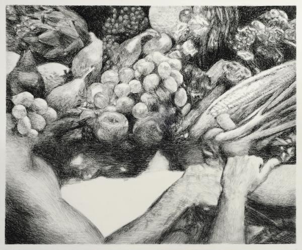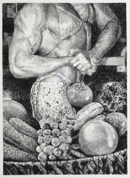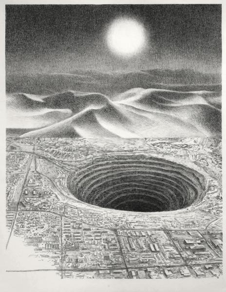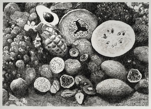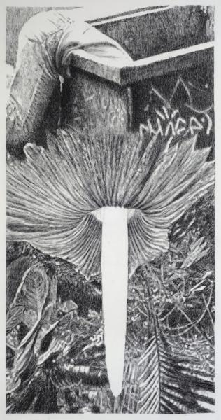 Οι φωτογραφίες αρχείου που αποτέλεσαν την πρώτη ύλη για τα έργα αντικατοπτρίζουν μια πλευρά της πραγματικότητας που δεν μπορώ να προσπεράσω και με κάποιο τρόπο πρέπει να διαχειριστώ. Ζόμπι, πορνό, φρούτα από διαφημίσεις, αδαμαντορυχείο, χρυσωρυχείο, έρημος, βουτιά σε κάδο σκουπιδιών, μια σπουδαία μποντιμπίλντερ, ο σοσιαλιστής πατέρας του εμπορικού κέντρου, fembot («θηλυκό» ρομπότ), λουλούδια που ουρλιάζουν, λουλούδι-πτώμα, διαδικτυακή φροντίδα ASMR, οθόνες τηλεόρασης, ο Οπενχάιμερ και η βομβίτσα του κ.ά.: κοντά στην λογική του κολάζ, πετσόκοψα τις αρχικές φωτογραφίες για να τις συναρμολογήσω σαν απλά Φρανκενστάιν που χρειάστηκαν το καθένα μόνο δύο πτώματα. Είναι ένας πρακτικός τρόπος σκέψης γύρω από τις πηγές και τα συναισθήματα που φέρουν. Έτσι έχω την αίσθηση ή την ψευδαίσθηση ότι τα κάνω δικά μου και μέσα απ’ αυτήν τη διαδικασία τα αλλοιώνω, τα αποκαλύπτω κάτω από ένα άλλο φως, ίσως τους ανοίγω τρύπες που μπάζουν προς άλλες κατευθύνσεις, ίσως φτιάχνω κάτι όμορφο από κάτι άσχημο, ή δείχνω μέσα στο άσχημο κάτι όμορφο εστιάζοντας με διαφορετικό τρόπο.