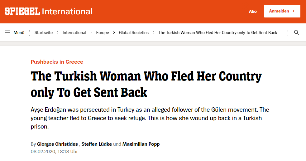 Ωστόσο, σύμφωνα με το ρεπορτάζ του Spiegel, στη προσπάθεια αυτή να σωθεί βρήκε εμπόδιο τις ελληνικές αρχές, οι οποίες με παράνομο τρόπο την έστειλαν πίσω στην Τουρκία με αποτέλεσμα να καταλήξει στις τουρκικές φυλακές.