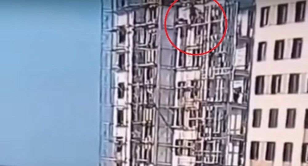 Δυο οικοδόμοι έπεσαν από 9όροφη σκαλωσιά η οποία κατέρρευσε σε υπό κατασκευή κτίριο στην πόλη Ντερμπέντ της Ρωσίας, ωστόσο κατόρθωσαν να επιζήσουν.
