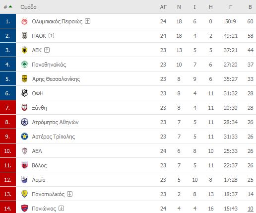 Δείτε τα αποτελέσματα και το πρόγραμμα της 24ης αγωνιστικής: