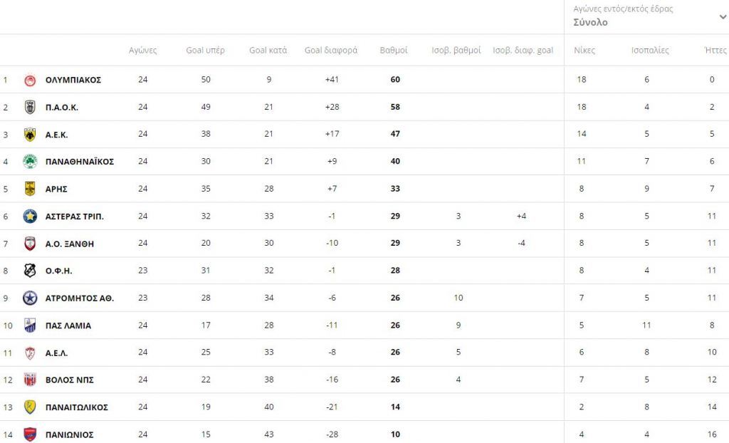 Δείτε τα αποτελέσματα και το πρόγραμμα της 24ης αγωνιστικής: