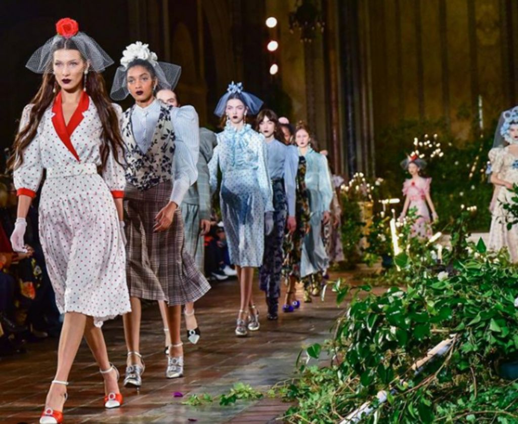 Τα headpiece αποτελούνται από χρωματιστά πέπλα με αληθινά και ψεύτικα λουλούδια, διακοσμημένα με δαντέλες, και κοσμήματα με κορώνα. Με επικεφαλής την Bella Hadid στην πασαρέλα το σόου ήταν μαγευτικό.