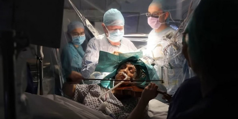 Μία ασθενής, που υπεβλήθη σε επέμβαση στον εγκέφαλο σε νοσοκομείο του Λονδίνου, έπαιζε βιολί καθ’ όλη τη διάρκεια της εγχείρησης για την αφαίρεσή του, προκειμένου οι χειρουργοί να εντοπίσουν την ακριβή ζώνη της επέμβασης και να διατηρήσουν την ικανότητά της να κινεί το αριστερό της χέρι και να μην χρειασθεί να εγκαταλείψει το 40χρόνο πάθος της για τη μουσική.