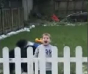 Το παιχνίδι αρχικά ξεκίνησε με τα σκυλιά της οικογένειας, όμως το ενθουσιώδες παιδί ζήλεψε από το παιχνίδι και αποφάσισε να συμμετάσχει.
