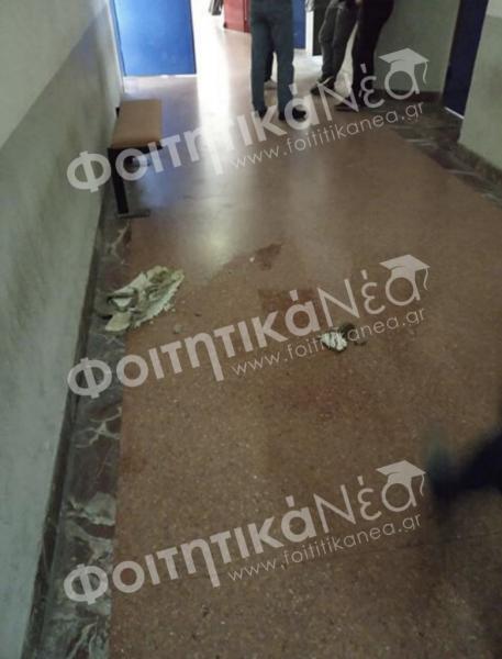 Διαρροή νερού στο κλειστό σύστημα θέρμανσης (καλοριφέρ) της πτέρυγας των Μηχανολόγων Μηχανικών στην Πολυτεχνική Σχολή του ΑΠΘ από κάποιο τρύπημα στις σωληνώσεις, που συνέβη μέσα στο Σαββατοκύριακο, είχε ως αποτέλεσμα να «ποτίσει» η ψευδοροφή σε διάδρομο έξω από αίθουσα διδασκαλίας και ένα κομμάτι της να σπάσει και να αποκολληθεί αφήνοντας μία τρύπα.