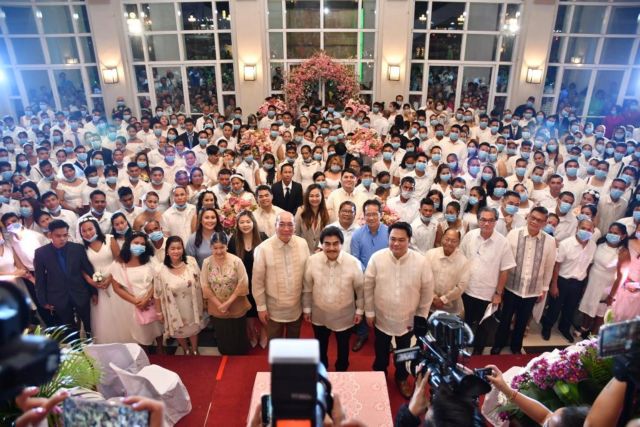 Διακόσια είκοσι ζευγάρια ξεκίνησαν χθες την κοινή τους ζωή στις κεντρικές Φιλιππίνες, ανταλλάσσοντας γαμήλιους όρκους και φιλιά φορώντας μπλε χειρουργικές μάσκες λόγω της επιδημίας του κοροναϊού.