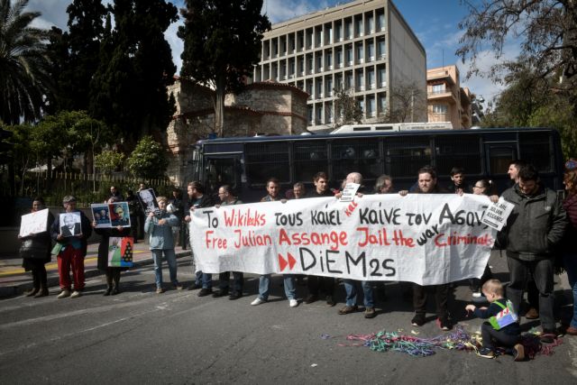 Διαμαρτυρία για τον Ασάνζ στη βρετανική πρεσβεία της Αθήνας