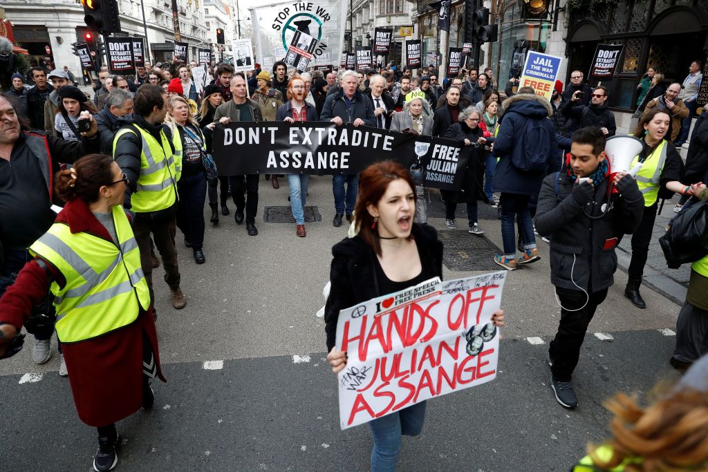 Εκατοντάδες διαδήλωσαν σήμερα στο Λονδίνο κατά της έκδοσης που απειλεί τον ιδρυτή του Wikileaks Τζούλιαν Ασάνζ. Κρατώντας πανό με συνθήματα «Ελευθερώστε τον Ασάνζ», «Μην εκδώσετε τον Ασάνζ» και «η δημοσιογραφία δεν είναι έγκλημα», το πλήθος συγκεντρώθηκε κοντά στην πρεσβεία της Αυστραλίας πριν πραγματοποιήσει πορεία στους δρόμους του Λονδίνου.