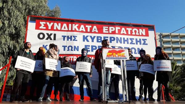 Διαδήλωση του ΠΑΜΕ με συμβολισμό και σύνθημα «Συνδικάτα εργατών…»