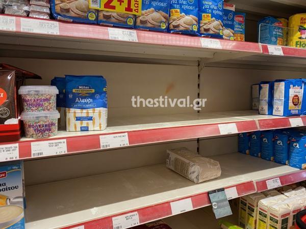 Ήδη έχουν αρχίσει να αδειάζουν τα ράφια με το αλεύρι, τη ζάχαρη και τα παξιμάδια.