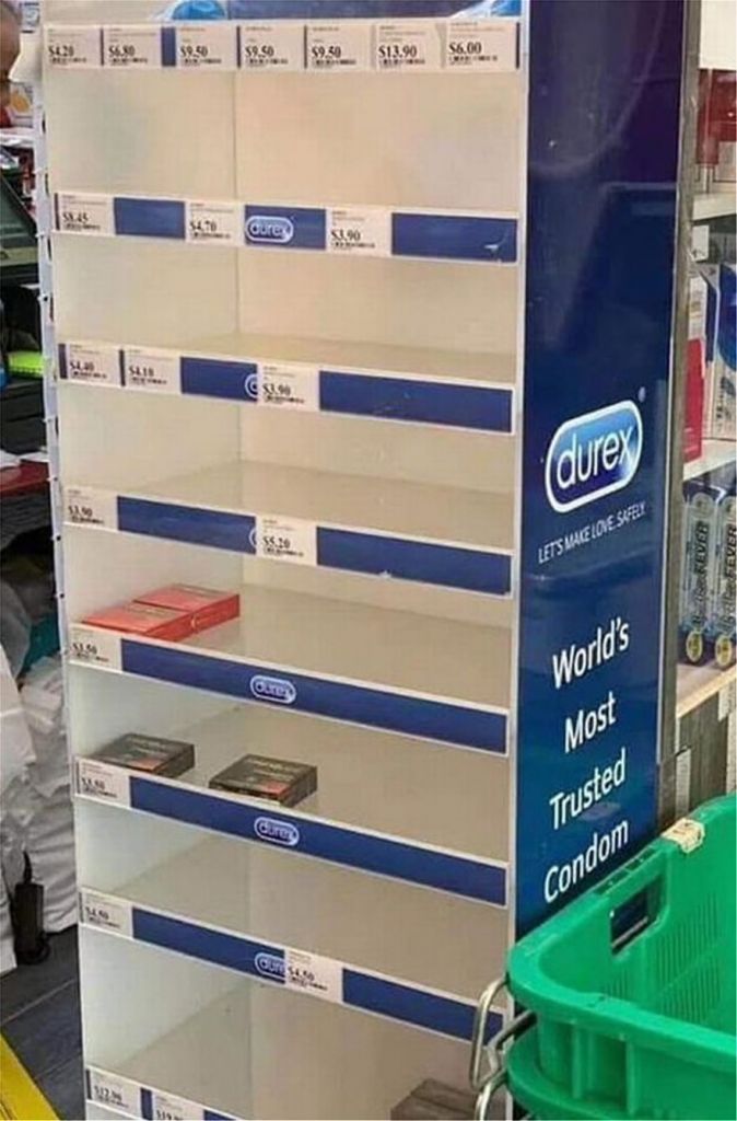 Μάλιστα εικόνες από την Αυστραλία έως και τη Σιγκαπούρη απεικονίζουν τα άδεια από προφυλακτικά ράφια στα σουπερμάρκετ!