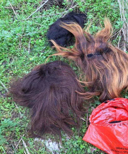 Στην πρώτη φωτογραφία διακρίνονται περούκες που βρέθηκαν από τον ελληνικό στρατό στην περιοχή των Φερών.