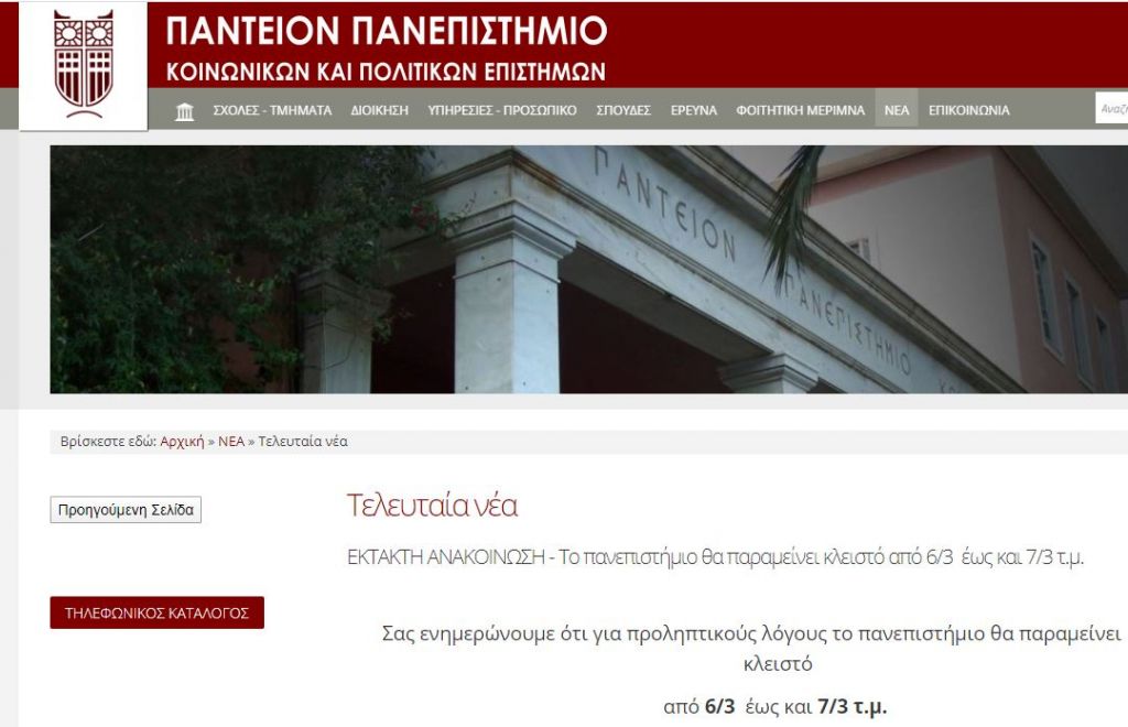 Κλείνει το Πάντειο για προληπτικούς λόγους
