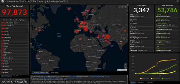 Σε περισσότερες από 80 χώρες που κόσμου έχουν καταγραφεί 96.000 κρούσματα του κοροναϊού. Σύμφωνα όμως με τον εκπρόσωπο του υπουργείου Υγείας, καθηγητή Λοιμωξιολογίας, Σωτήρη Τσιόδρα, τα κρούσματα είναι πολλά παραπάνω, ίσως και εκατοντάδες φορές παραπάνω καθώς είναι μικρή η δυνατότητα καταγραφής σε χώρες της Αφρικής και της Ασίας.