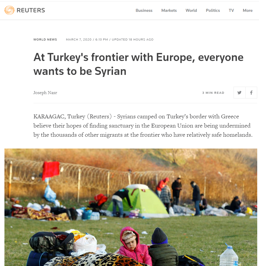 Το δημοσίευμα εστιάζει στο γεγονός ότι πρόσφυγες που δεν προέρχονται από τη Συρία, αλλά από άλλες χώρες, παριστάνουν τους πρόσφυγες από την Ιντλίμπ για να περάσουν στην Ευρώπη.