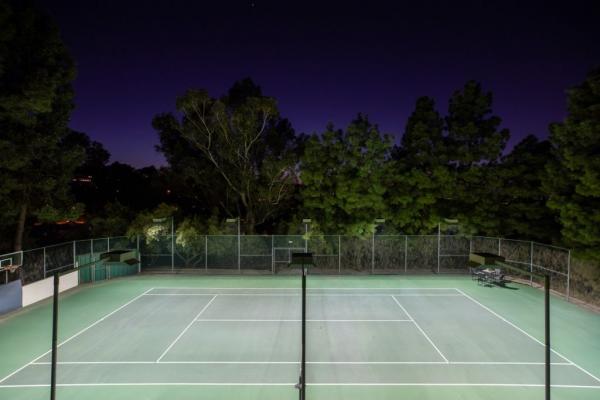 Η υπερπολυτελής έπαυλη βρίσκεται σε έκταση με καταρράκτες, γήπεδο τένις, ιδιωτικό μονοπάτι που οδηγεί σε χώρο στάθμευσης για περισσότερα από 30 αυτοκίνητα.